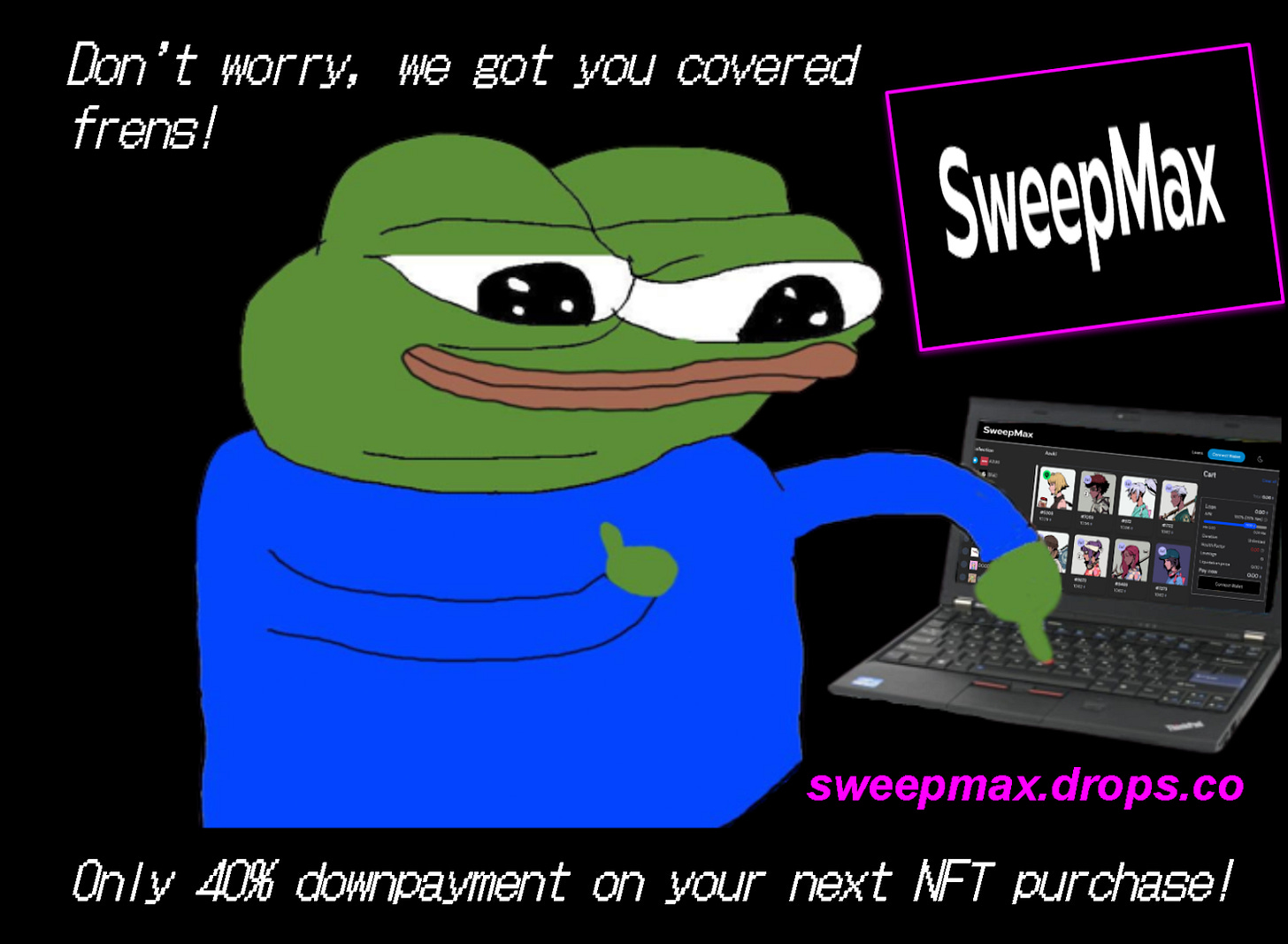 We’ve made SweepMax, a new buy now, pay later service for NFTs. With as little as a 40% deposit, you have the opportunity to buy NFTs across 23 collections.